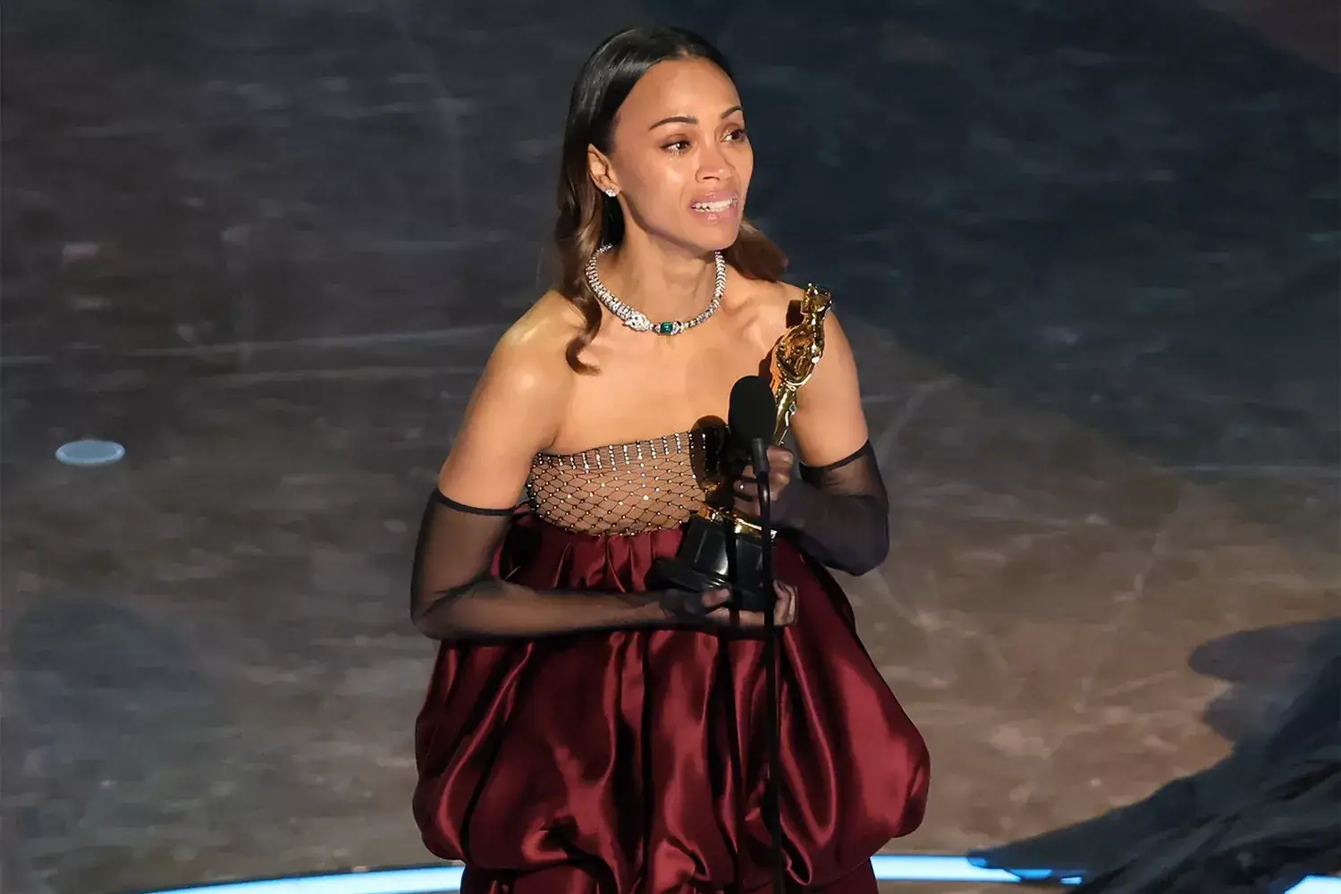 Zoe Saldaña wins Best Supporting Actress at the 2025 Oscars.