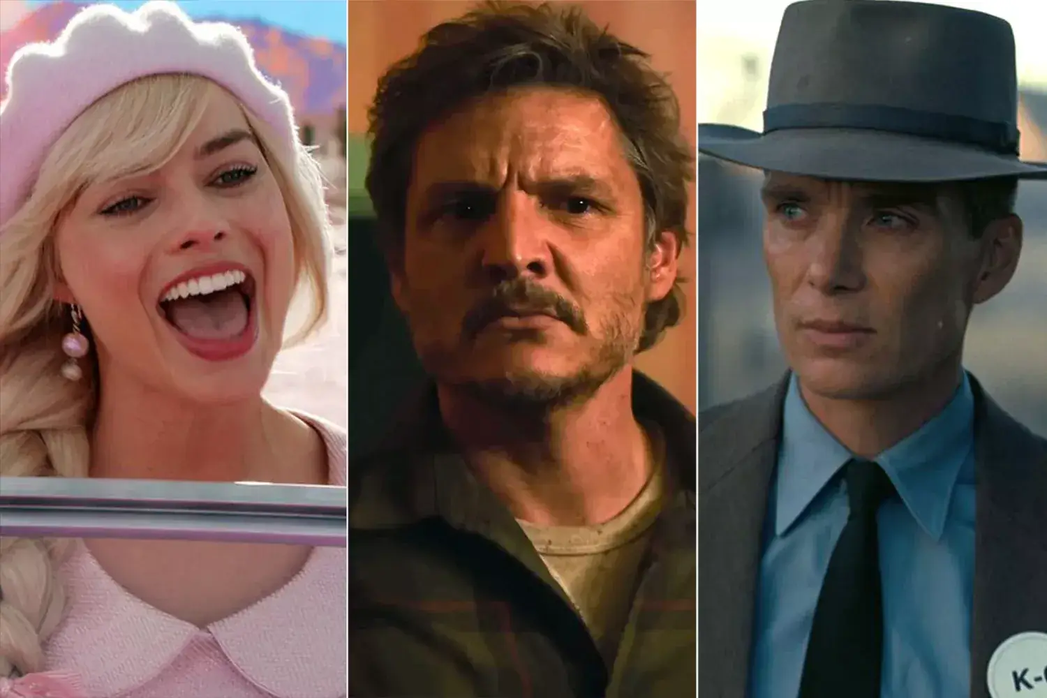 Margot Robbie in Barbie / Pedro Pascal in The Last of Us / Cillian Murphy in Oppenheimer.