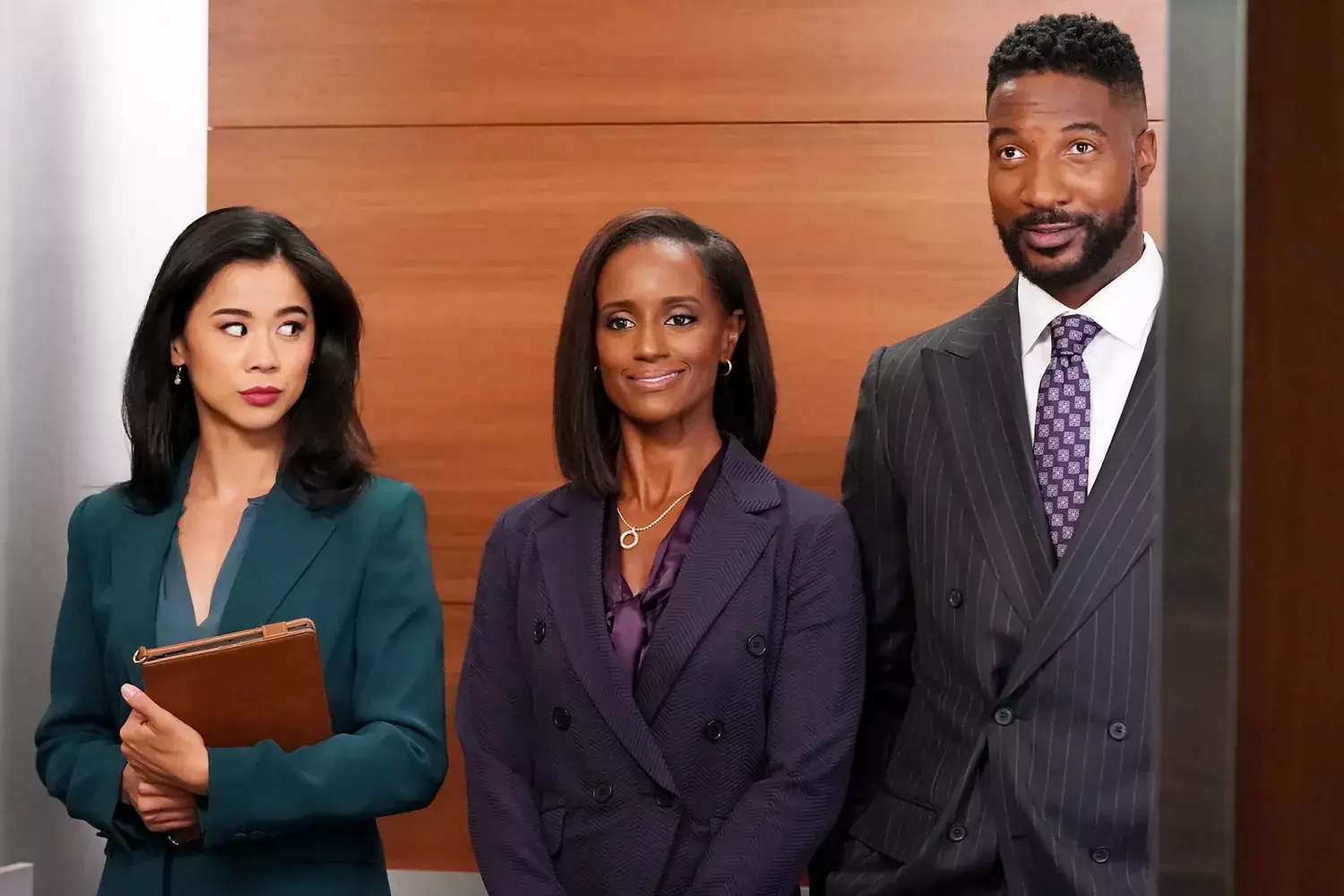 Leah Lewis, Skye P. Marshall, and Eme Ikwuakor on 'Matlock'.