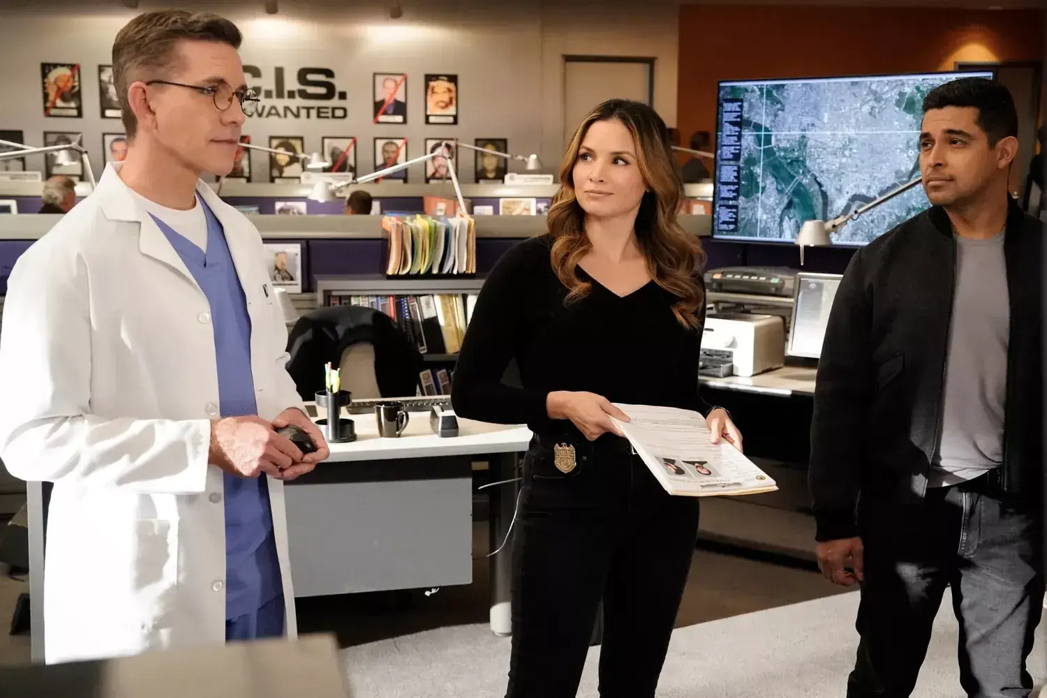 Enter Torres (Wilmer Valderrama), who undergoes a punishing run on Life Sequence’s treadmill under the watchful eye of Doctor Donovan (Nick George), the medical person in charge, while McGee and Kasie remotely access the data they need. (Don’t worry; they have a warrant!)