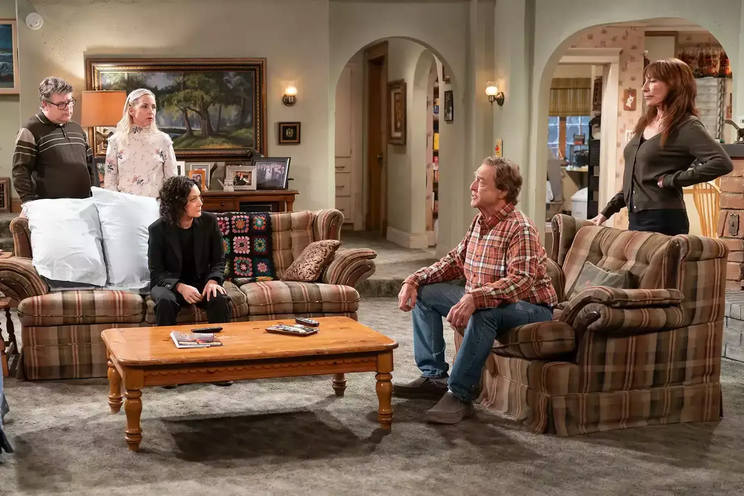 Sean Astin, Lecy Goranson, Sara Gilbert, John Goodman, and Katey Sagal on 'The Conners'.