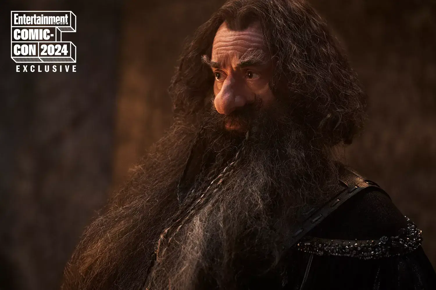 Celebrimbor (Charles Edwards), the greatest elven blacksmith of the Second Age, forged the three elf rings — with a little help from Sauron (Charlie Vickers) — in the season 1 finale. But the dwarves have skilled smiths of their own, and season 2 will introduce us to one of the most famous: Narvi (Kevin Eldon). Cited in J.R.R. Tolkien’s appendices to The Lord of the Rings as the dwarf who built the Doors of Durin (“Speak ‘friend’ and enter”), Narvi is set to play a significant role in the dwarven politics.