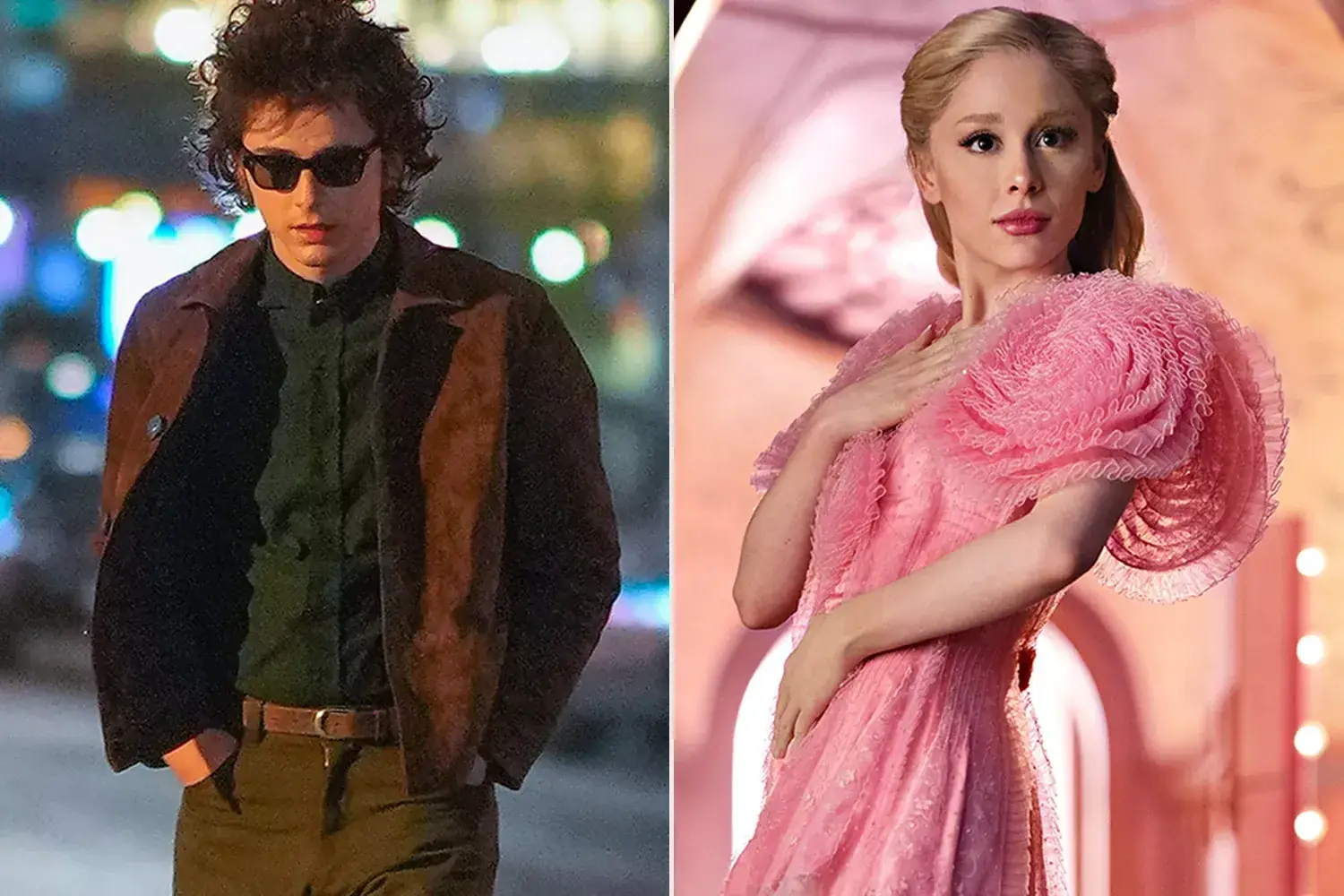 Timothee Chalamet in 'A Complete Unknown'; Arian Grande in 'Wicked'.