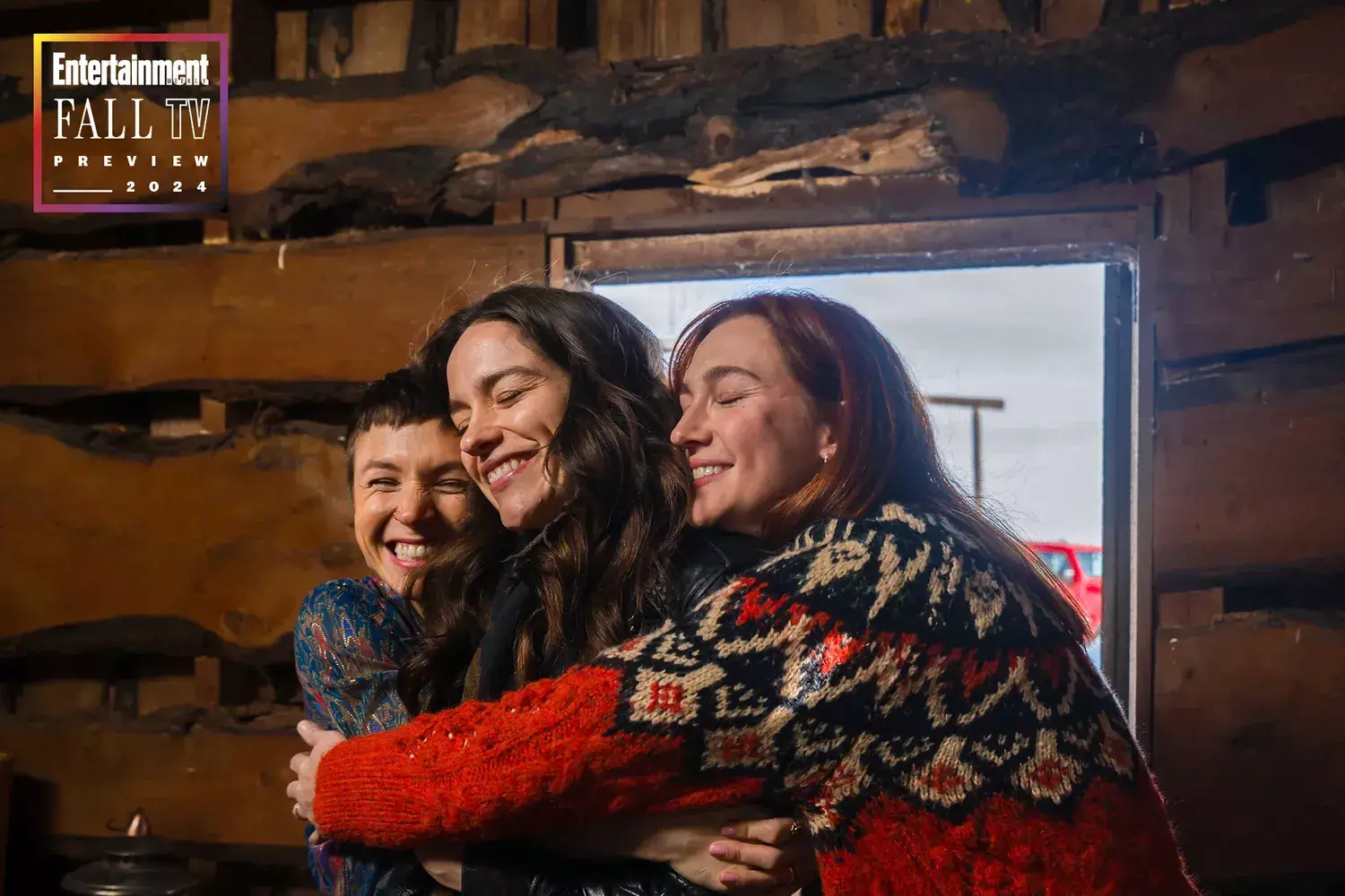 Dominique Provost-Chalkley, Melanie Scrofano, and Katherine Barrell in 'Wynonna Earp: Vengeance'.